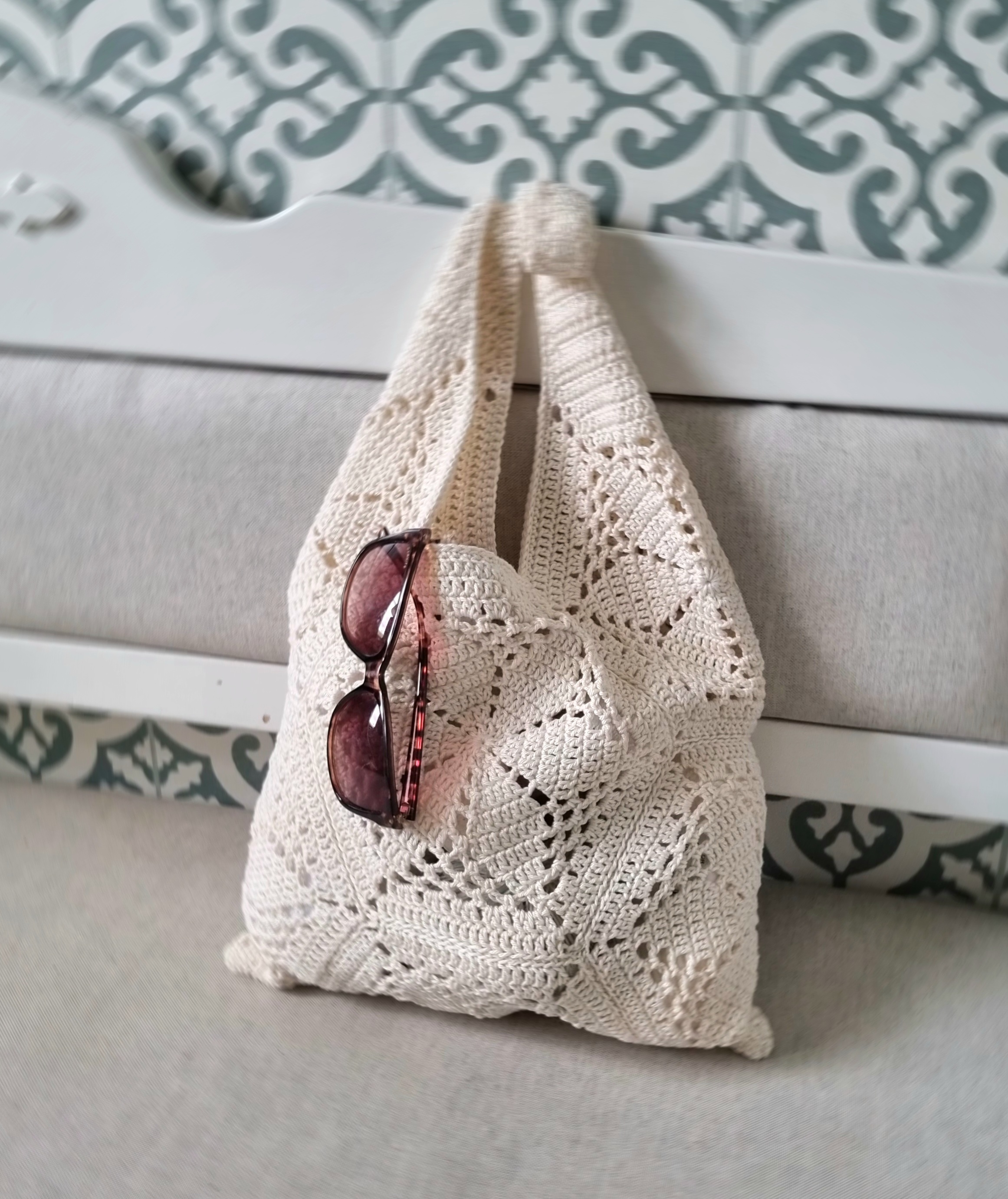 The bag is made of 7 hexagons, sewn together. I`m including step by step photos to make the pattern as simple as possible. I hope you are going to enjoy the pattern!