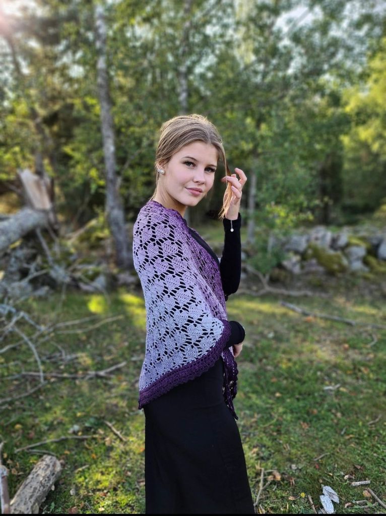Christmastime is over for now, we have stepped in to a new year with new possibilities. Valentine’s Day in februari is just around the corner and it’s time to start this shawl project. Give it to someone you love or just crochet one to your self. Pattern in swedish and english (US-terms)Perfekt for one skein of whirl or why not try the beautiful colours in the ”favoritkakan”. You can buy the yarn at http://www.favoritgarner.se