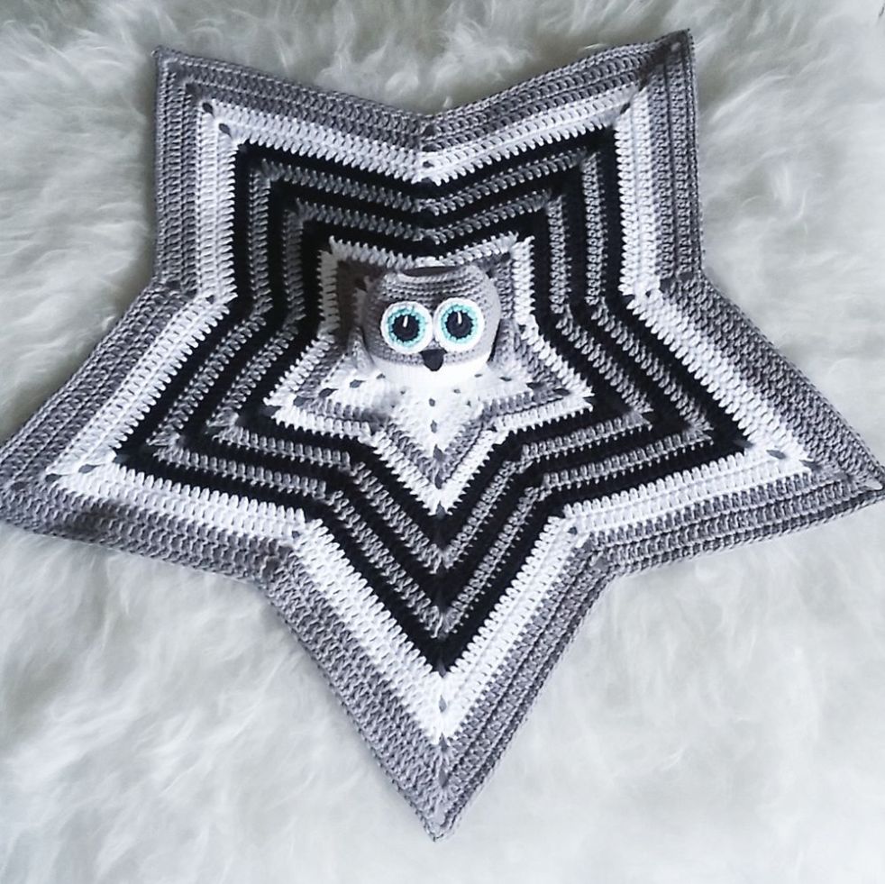 Virkad snuttefilt med uggla