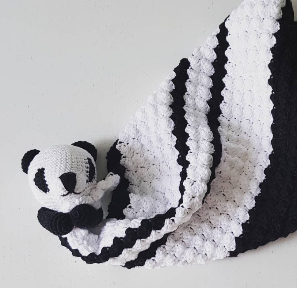 Hej! Nu var det ett tag sedan jag lade upp ett mönster, så jag känner att det börjar bli dax! Idag bjuder jag på en liten gosig pandasnuttis i det underbara garnet cotton alpacka från Katia. Hi! Now it´s a long time since I last published a pattern. Today I would like to share the… Fortsätt läsa Panda snuttefilt (panda securityblanket)
